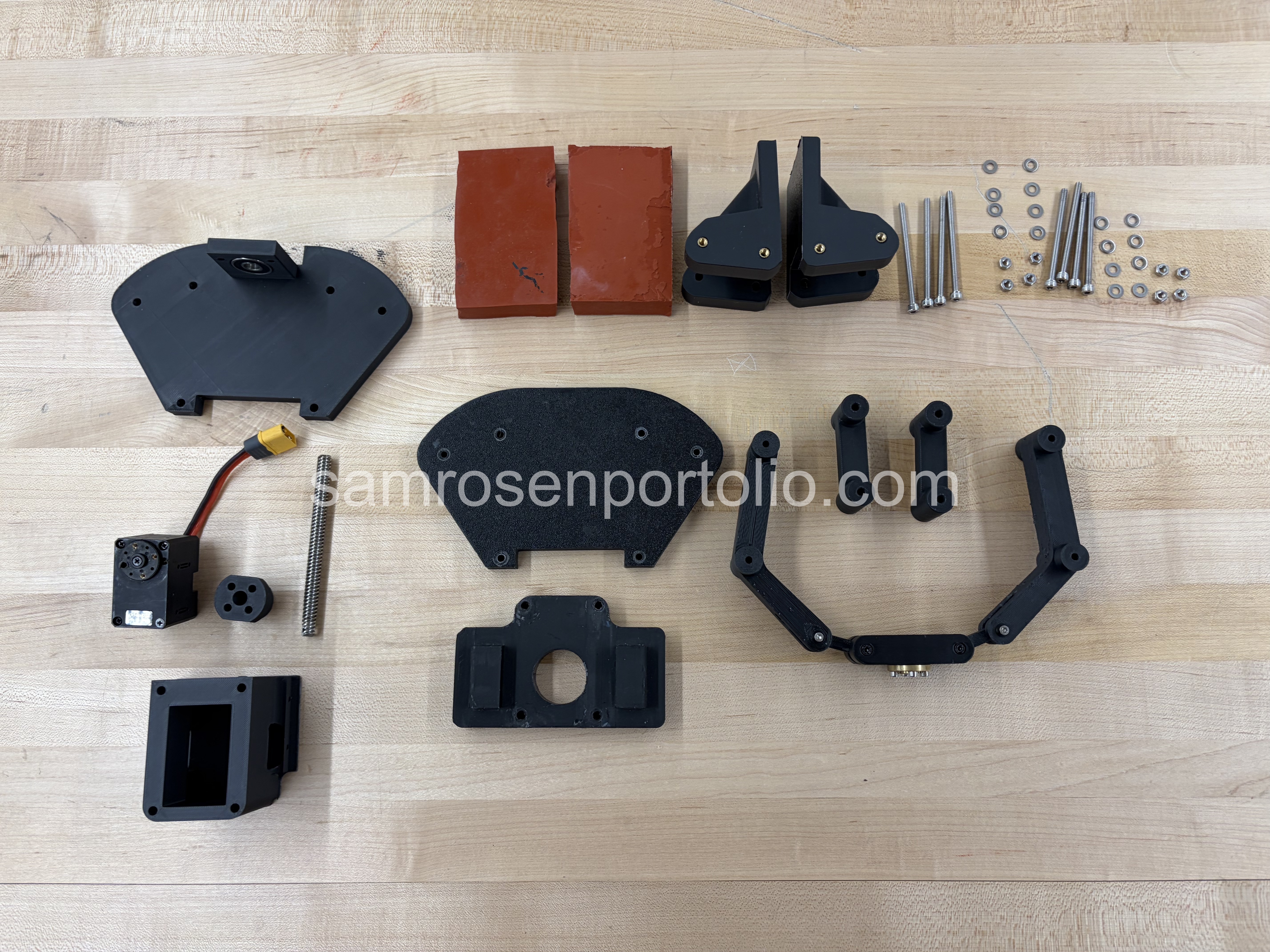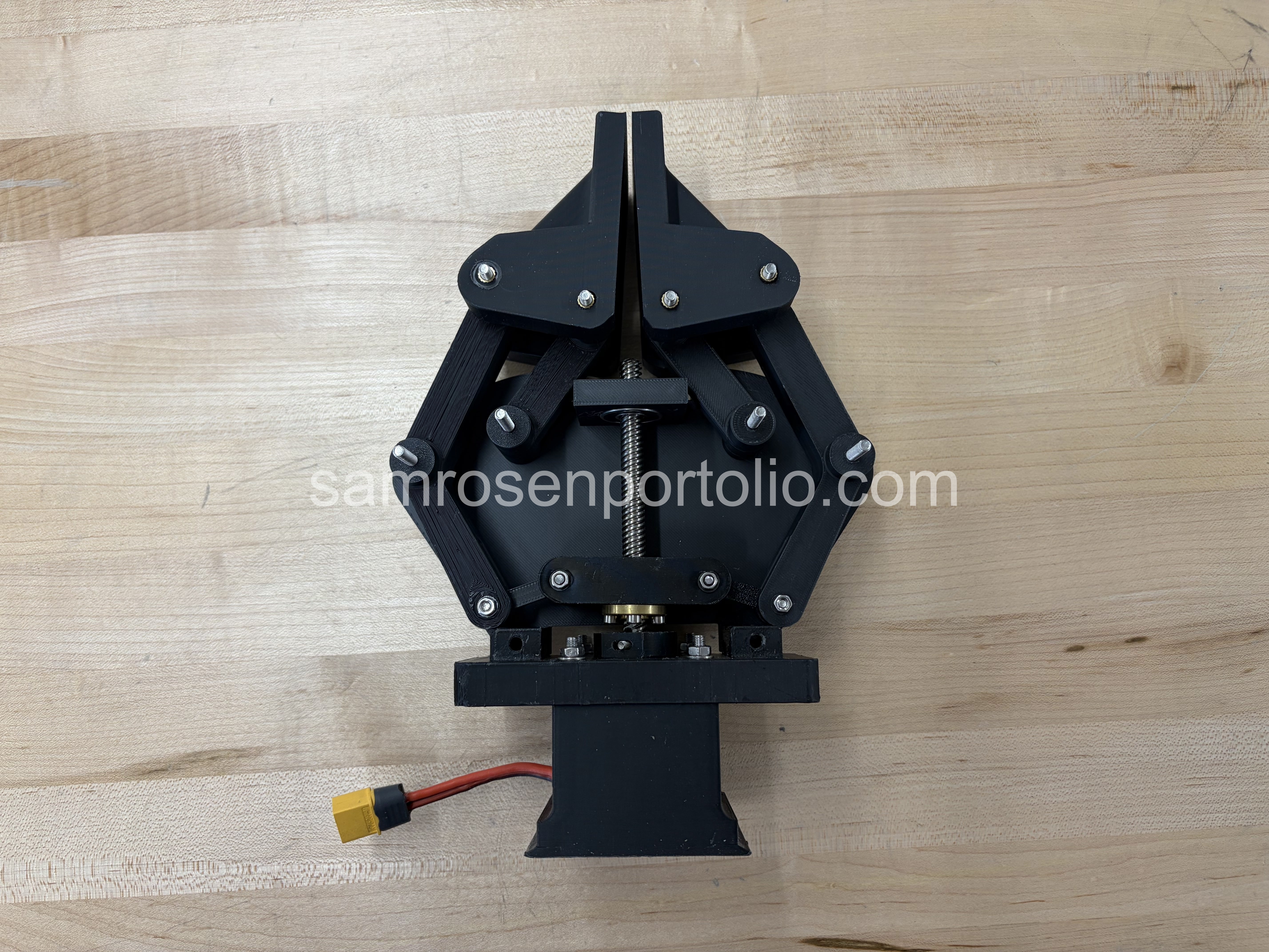 Design and manufacturing of a robotic gripper end effector utilizing a lead-screw mechanism to maximize gripping force.
